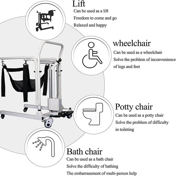 | Functions | Patient Lift / Transfer / Toilet / Bath Chair / Wheelchair / Car |